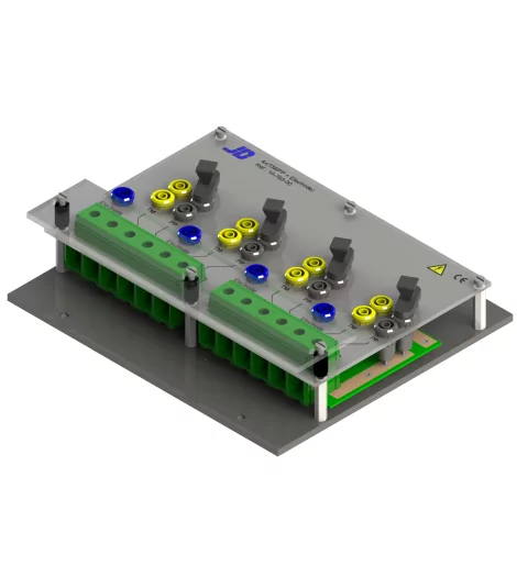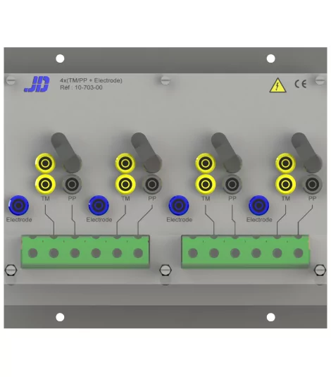 Anschlussplatine, die 4 Mal (TM/PP + ELEKTRODE) bestückt ist.