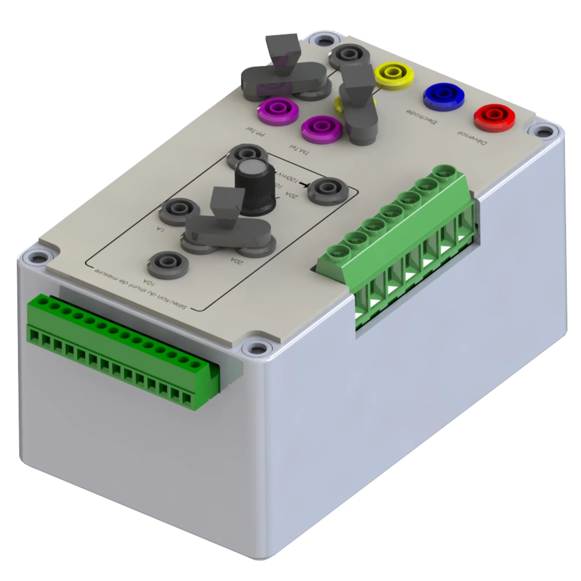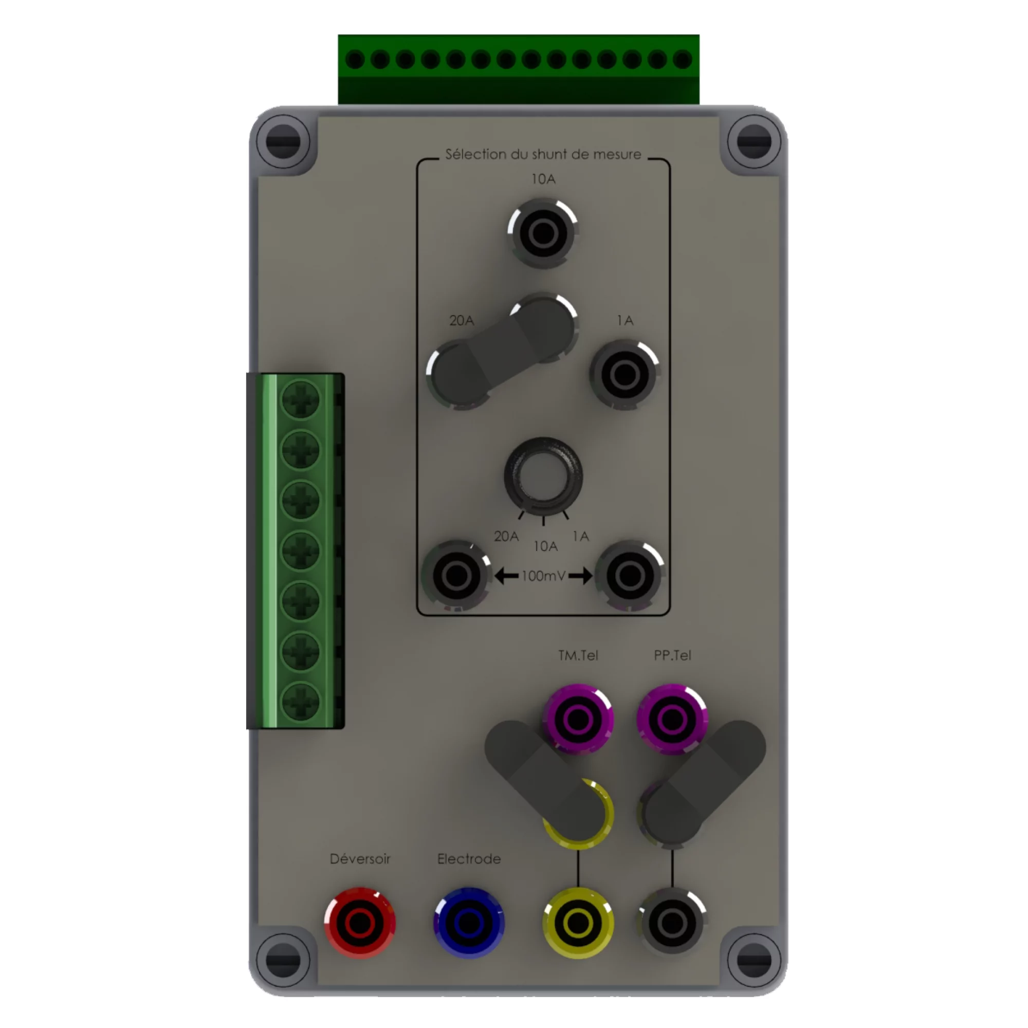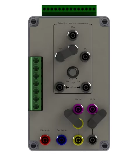 Messbox Shunt LCTE (*) für Gleichrichterstation, mit Auswahl des Shuntwertes per Stecker.