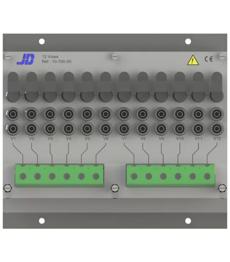 Connection plate equipped with twelve terminals labeled V1 to V12.