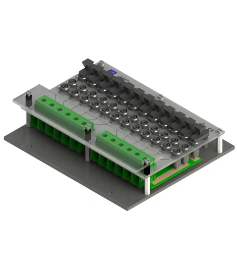 Connection plate 12 ways V1 to V12. For BC100 cabinet. CEI61010 measurement, up to 20 A, 2.5–35 mm² terminals. Robust and easy to integrate.