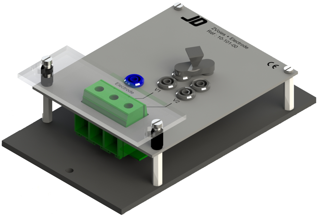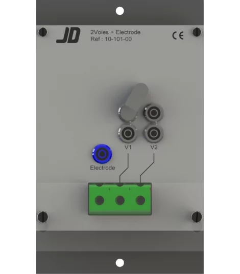 Connection plate with 2 ways identified V1 and V2, and an electrode connector.