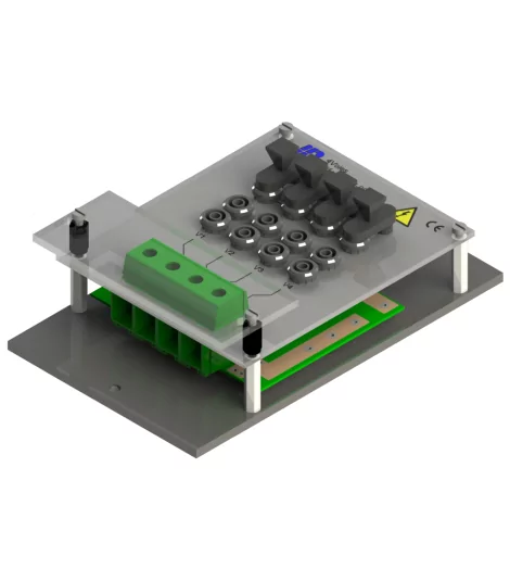 Connection plate with 2 X 2 ways identified V1 to V4, and common.