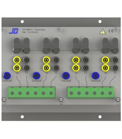 Connection plate equipped with 4 times (TM-corrosion indicator PP-Pipe + ELECTRODE) + COMMON.