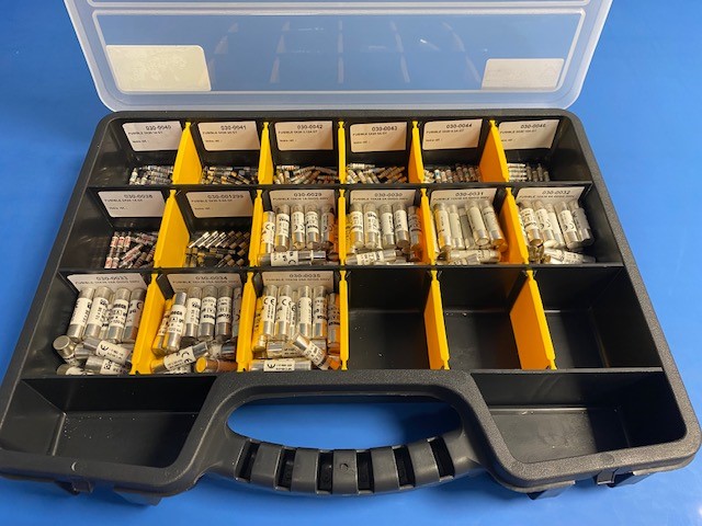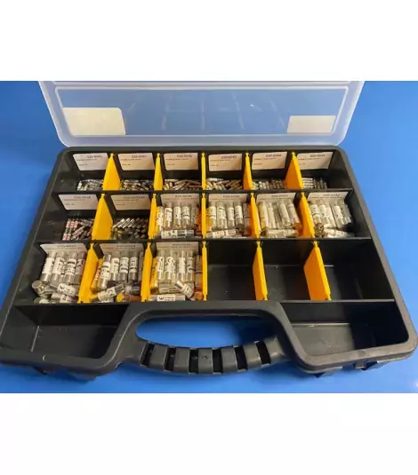 17-compartment carrying case including the following fuses: