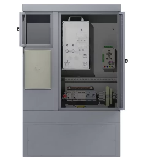 The rectifier station SCMAC is equipped with an aluminum cabinet. By default, the cabinet will be RAL7035 color. For another color please specify at the order.