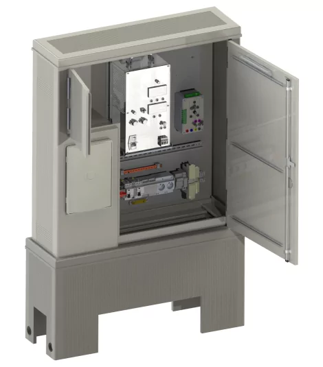 The rectifier station SCMAC is equipped with a PVC cabinet.